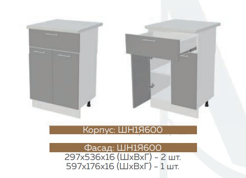 Глубина нижних шкафов без учета столешницы: 444 мм, с учетом столешницы 600 мм